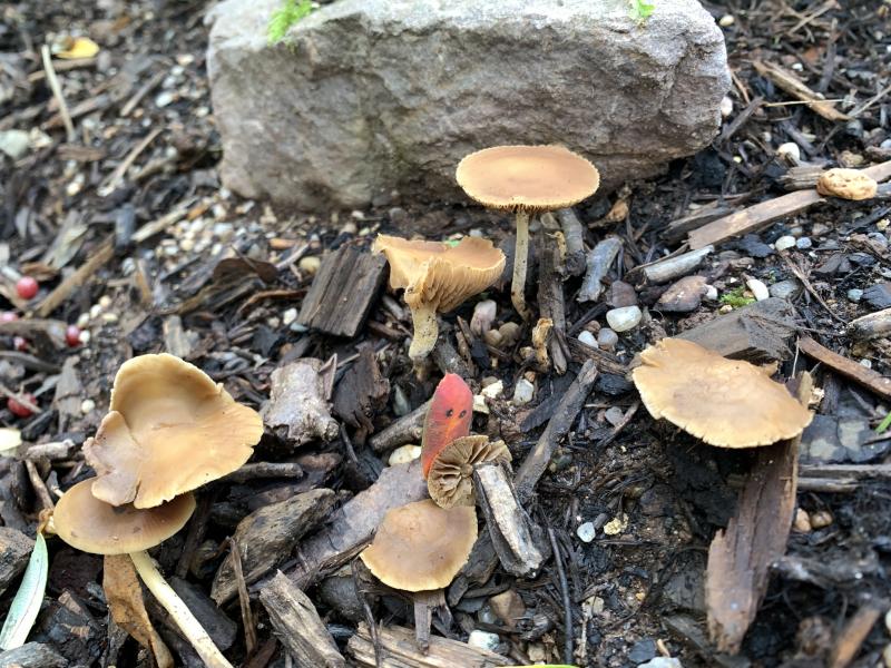 8 Wochen Dürre, dann 8 Tage Regen, und nun sprießen die Pilze zu Hunderten, überall. Speziell zwei Arten, welche sind das? Diese in erster Linie auf den Freiflächen und Beeterändern…