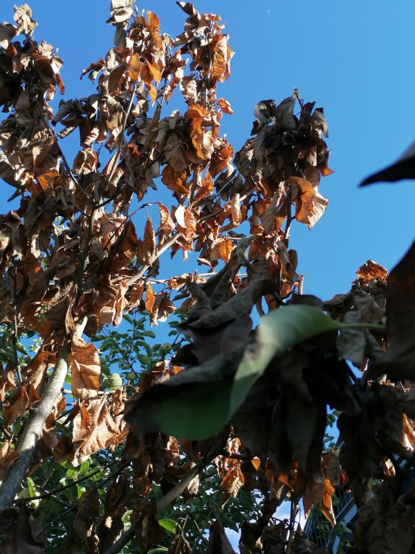 Wie schon ein paar Mal geschrieben: Magnolia grandiflora wirft bei Trockenheit nicht gleich die Blätter ab und sieht meist ganz o.k. aus.