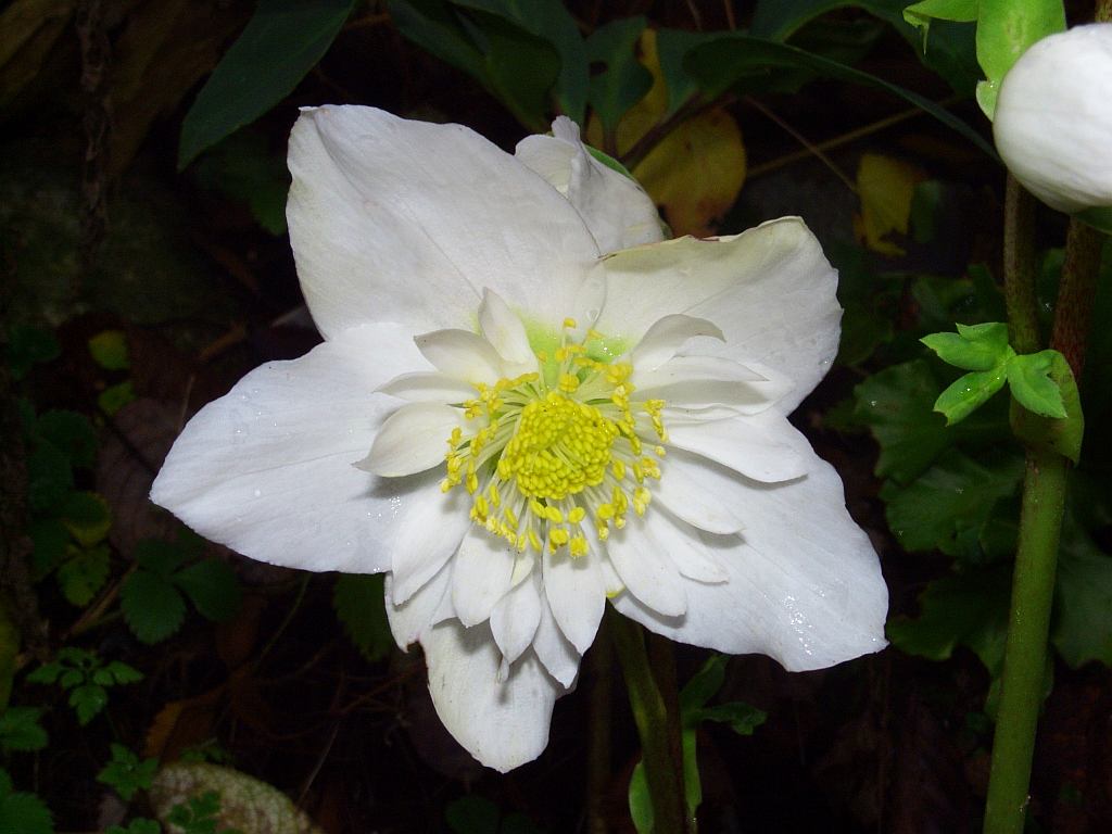 Erst nach Helleborus niger Praecox blüht diese Form, die ich gerne die "Anemonenblütige" nenne. Während die Blüten der Praecox-Form im Oktober oft derbe von Schnecken zerzaust werden, bleiben die der Anemonenblütigen meist verschont. Nicht so dieses Jahr: wegen des milden Wetters sind die Schleimer noch aktiv, wie in der rechten Blüte sieht.