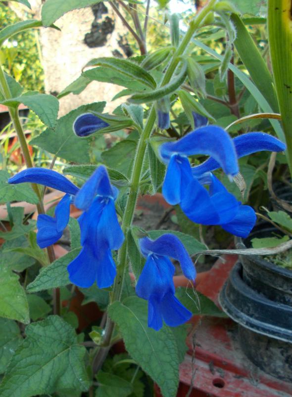 So, da isse nun endlich: Salvia patens, Erstblüte der dieses Frühjahr ausgesäten Exemplare :D Saatgut war von Thompson & Morgan, und wenn ich dran denke, kommt nächstes Jahr eine der andersfarbigen dran, von denen Soili mich mit Saatgut versorgt hatte. Mal schauen, ob die Knollenüberwinterung klappt.