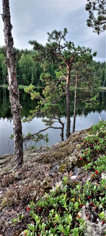 In diesem Sommer ist mir im finnischen Seengebiet zum wiederholten Mal aufgefallen, wie schön die Kiefern sind, die sich über Jahrzehnte auf Felsen, in winzigen Spalten, halten und kaum Zuwachs zeigen. Da einige Fotos der Schwiegereltern und Großelterngeneration zeigen, wie alt diese Exemplare sind, staunt man in Ehrfurcht über Überlebenswillen, Durchhaltevermögen und Durchsetzungskraft. Knorrige und skurril-graphische Schönheit erinnert an Bonsai; und wenn man sich über die verschiedenen Bonsai-Stile und Gestaltungsmöglichkeiten informiert, wächst die Achtung vor diesen Naturschönheiten.