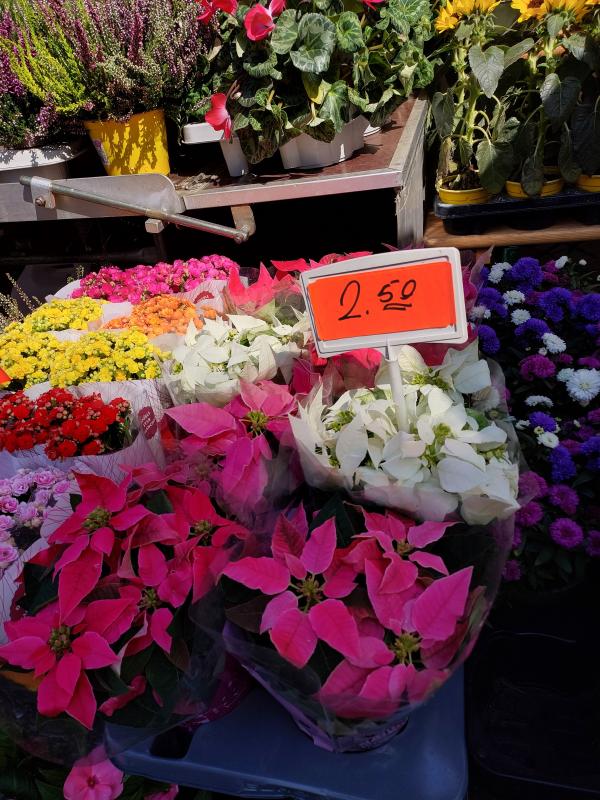 Denn heute auf dem Bonner Markt die ersten Weihnachtssterne im Angebot .......bei 25 Grad...