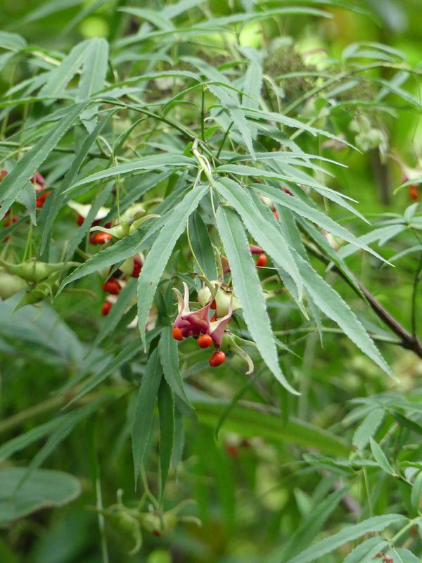 Ebenso Euonymus cornutus var.quinquecornutus, dieses Jahr ohne Befall von Gespinstmotten.