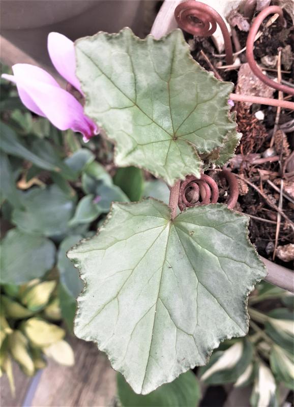 Ein Cyclamen coum Silver Leaf zeigt sich schon