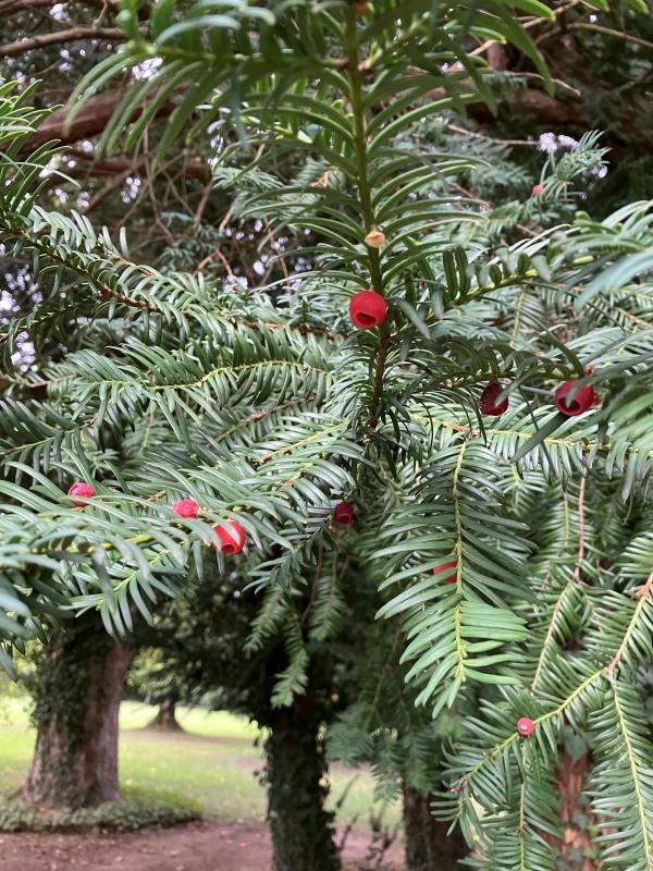 Es gibt viele leckere Beeren von den häufigen Taxus Baccata.