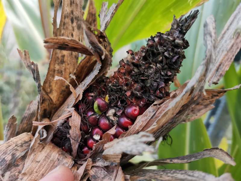 Ich bin hier mit dem roten Ungarischen Riesenmais noch am ausdiskutieren mit den Mäusen, Ratten oder Alexandersittichen was für wen übrig bleibt.