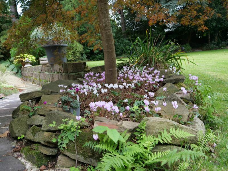 Hier blüht ein verloren geglaubtes Cyclamen mirabile 'Tilebarn Jan'. Im vergangenen Jahr zeigte sich nur ein winziges Blättchen.