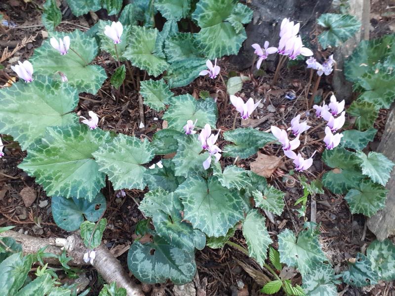 Sie sind jedenfalls wunderschön... bestimmt auch in Schlüpferrose. Ich habe gerade vor dem Bodentiefen Fenster am Esstisch ein Cylamenbeet neu angelegt mit hederifolium, coum, purpurascens... bis jetzt alles noch sehr mickerig. Auch die Blätter. Ich stell mir das schön vor, wenn in den tristen Wintermonaten das Cyclamenlaub Akzente setzt und ich mir das beim Essen anschauen kann. Bis jetzt jedenfalls kann ich mir das nur vorstellen. Sehen tue ich noch nicht allzu viel. Nur ein paar vereinzelte Blüten.