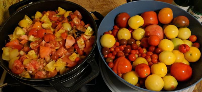 Die Tomaten am obigen Foto haben übrigens etwas mehr als 12 Liter konzentrierte Sauce ergeben.