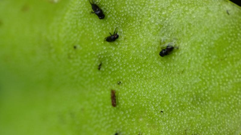 Für mich sehr interessant wie das Großblütige Fettkraut (Pinguicula grandiflora)bei uns am Teich Nährstoffe aufnimmt. Kleine Insekten bleiben auf den klebrigen Tropfen der Blätter hängen und werden verdaut.