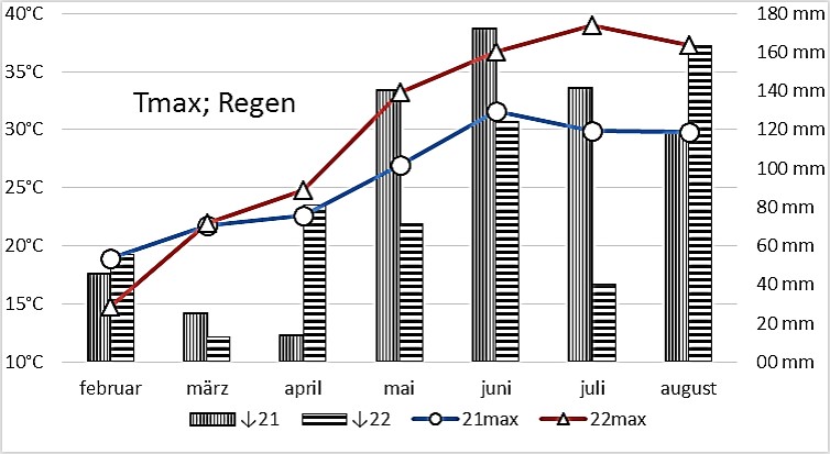 Der Sommer 2022 war hier nach 2003 der zweit wärmste, noch vor 2015 und 2018. Vor allem 2003 und 2018 waren deutlich schlimmer was die Trockenheit angeht.