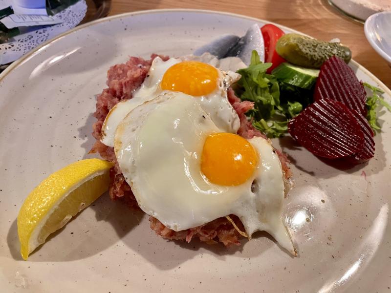 Ich hatte Goldforelle mit Kartoffeln und Butter, vorher gemischten Salat.