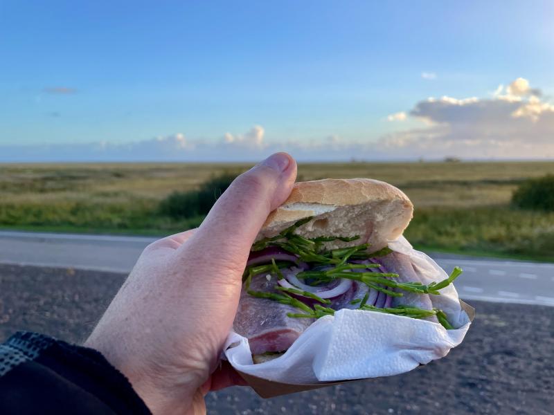 heute abend schneller deichimbiss: matjesbrötchen mit queller, genial! :D