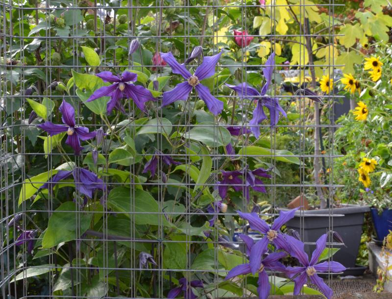 Clematis 'Durandii' legt nach Rückschnitt eine 2. Runde hin. :D