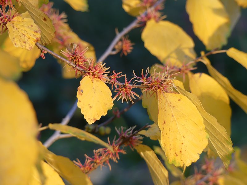 Hamamelis virginiana 'Mohonk Red' ist jetzt in Hochform. :D