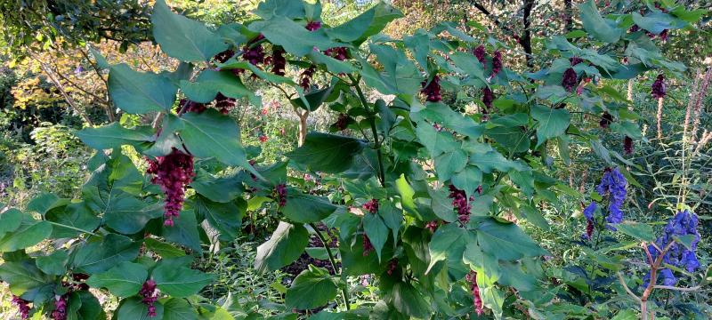 Zwar ist die Blüte beendet, aber mit dem Gewicht der wachsenden Früchte wird Leycesteria immer mehr überhängend und dadurch eleganter.