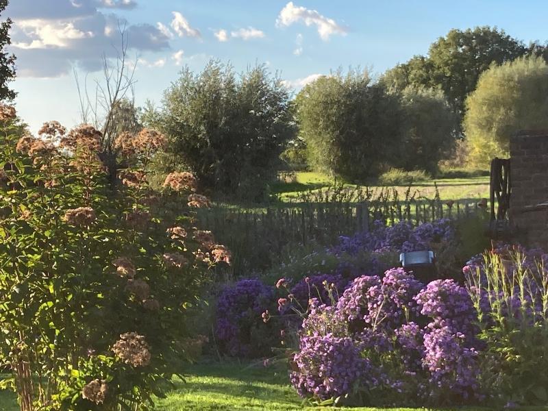 Von hier heute nur der Garteneingang, der mir gerade besonders gefällt. Unter Astern und Goldrute beginnt schon das nächste Jahr. Die Schneeheiden stehen satt in Knospen.