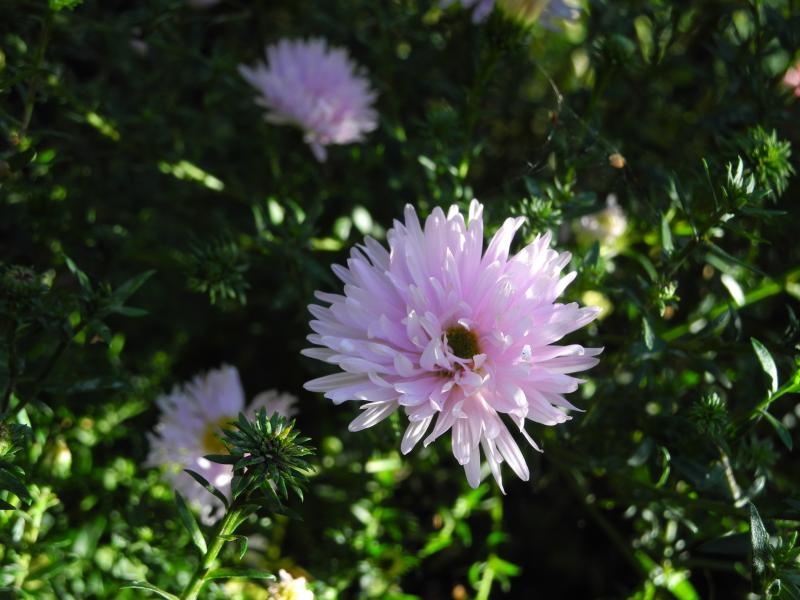 Hier blühen die Frikart-Astern immer noch und schon unglaublich lange. Es dürfte 'Wunder von Stäfa' sein, die mit ihren großen Blumen nach ein paar Jahren breit ausladende Prachtbüsche bildet.