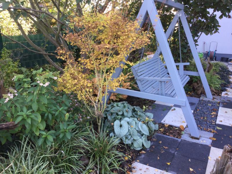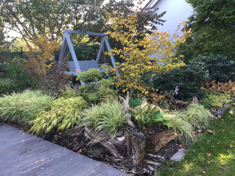 Sorry, habe ich blöd geschrieben die ersten Bilder ( die Seite mit der Schaukel!) worden in diesem Frühjahr angelegt. Da habe ich alle „alten Sträucher/Bäume gerodet, nur die Zierkirsche und die große Hasel durften bleiben alles andere ist rausgeflogen! Die „andere Seite“ ist letzten Herbst angelegt worden ( die Seite mit den Hamamelis). Davon zeige ich Bilder in meinem Teichbeitrag, der mit den Sumpfschildkröten.