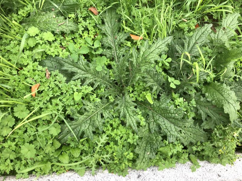 Sieht für mich nach der Rosette von einer der zweijährigen Distelarten aus, die kommen hie und da mal auch bei mir in der Wiese...