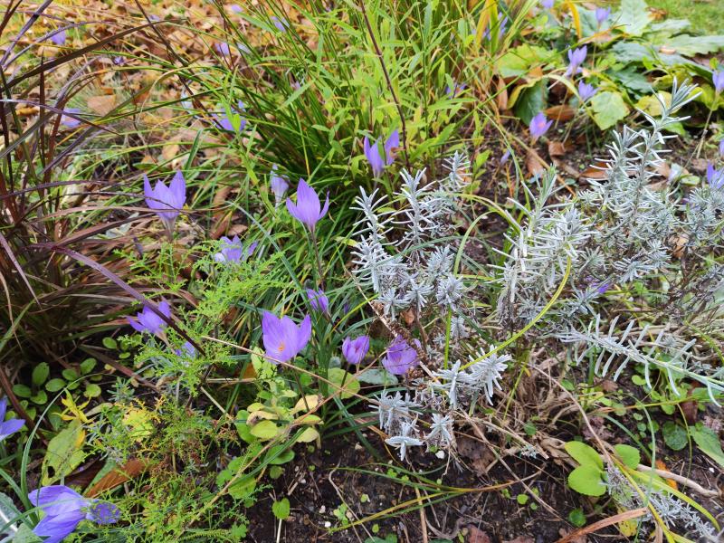 Ich schaute die Tage immer wieder mal im Vorgarten, aber da war nichts. Gestern dann, nachdem es den ganzen Tag geregnet hatte, sah ich beim Aufbruch zum Spaziergang dann endlich ein paar Blüten von C. speciosus. Heute, nachdem es nochmal kräftig geregnet hatte, war die Hälfe davon schon umgefallen. ::) Zwei Wochen früher, und ich hätte eine herrliche Krokusblüte gehabt, aber so...