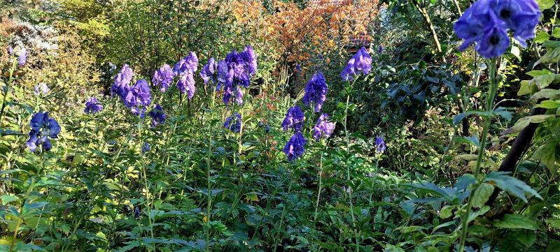 Genau: Im Herbst ist das Eisenhutblau unverzichtbar bei all den Gelb-, Orange- und Rottönen. Ich habe mal durchgezählt: Aktuell sind es ca. 70 Blütenstängel im ganzen Garten. Seit 35 Jahren sind sie vorhanden und die drei Kinder und sieben Enkel haben sich bis jetzt noch nie "vergriffen", weil alle um die Giftigkeit wissen.