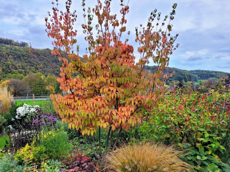 Bevor die Blätter fallen... hier Cornus kousa 'Milky Way' im herbstlichen Festkleid. ;D