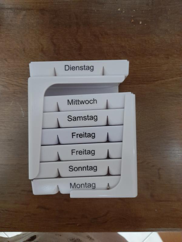 Ich habe die Medikamentenstellung meines Mannes abgegeben, weil... na ich sag mal das Zusammenspiel gewisser Stellen mit mir nicht funktionierte. Das hat mich so über den Rand gebracht, dass ich nicht immer das Dosett füllen konnte. Ich hatte die Hoffnung, dass ich mich weniger über die ehrlich unsägliche Krankheitssituation meines Mannes aufregen muss. Weil meine Kraft endlich ist.
