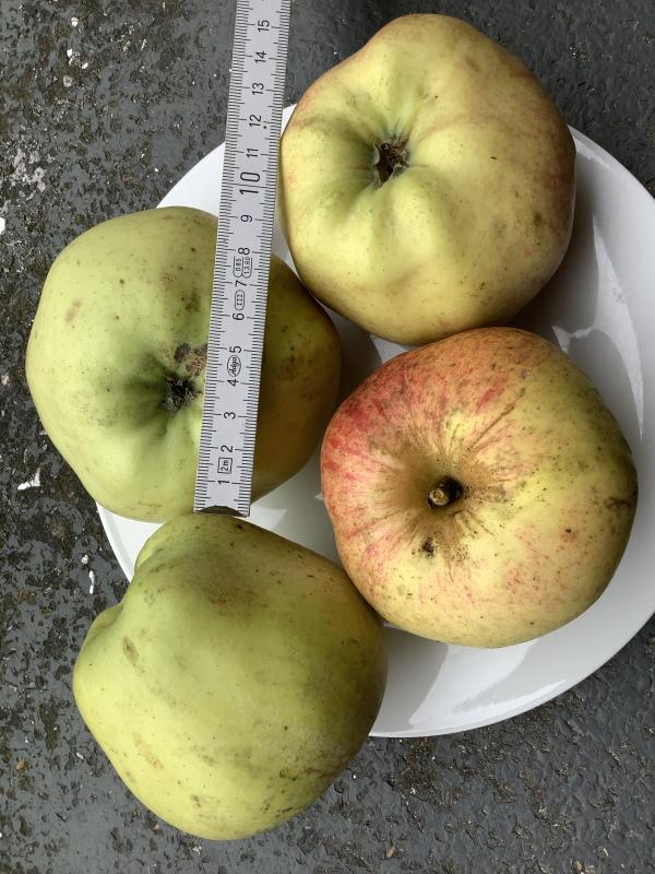 Bin gerade fertig mit der Ernte von 'Maibier's Parmäne. In den Gefäßen sind 57 kg. Bin zufrieden, auch mit den anderen Sorten.