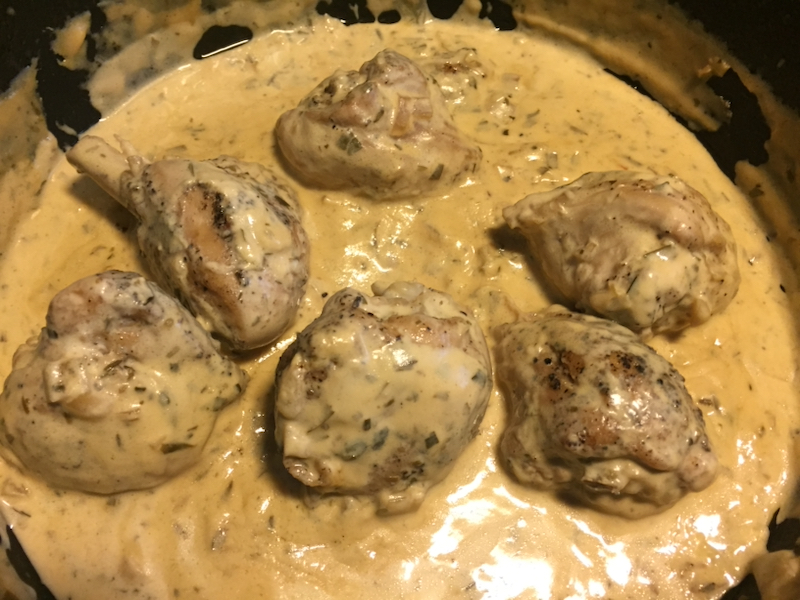 Hier heute bei 15 Grad und Dauerregen: Huhn in Estragonrahmsösschen.