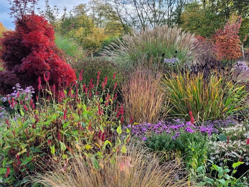 Die nun dominierenden Gräser und die Amsonia liefern jetzt etwas leuchtendes Gelb. :D