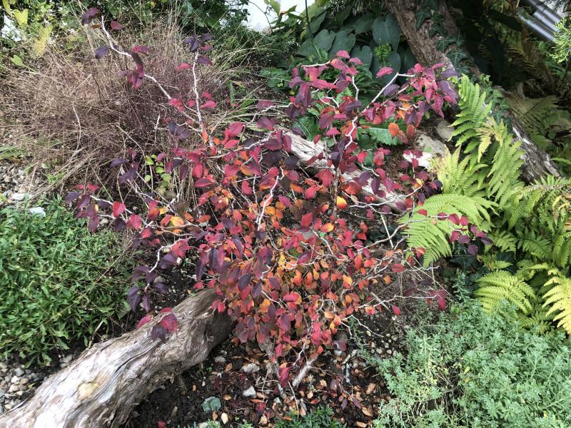 Der Herbst schreitet mit großen Schritten voran, die letzten Astern blühen, das Laub der Bäume wird zunehmend lichter, und es mischen sich immer mehr Brauntöne ins Bild. Der Rasen ist dank der reichlichen Regenfälle wieder sattgrün, wahrscheinlich muss ich ihn die Tage doch nochmal mähen, denn bei Temperaturen um die 20°C wächst alles fast wie im Frühling. Bisher ist auch noch kein Frost in Sicht, so dass der rote Kerzenknöterich, vorgestern endlich einmal aus dem Staudendickicht freigestellt, nun ein schöner Blickfang ist. Der kleine Ahorn am Teich hat nun schon fast sein ganzes Laub verloren, zum Glück hatte ich die Tage noch ein Foto mit der glühenden Herbstfärbung gemacht.