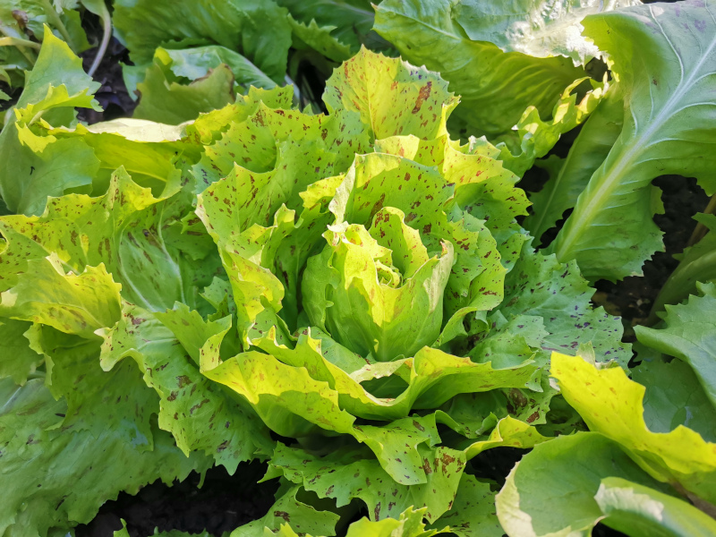 Krause Endivien ist schon weg. Bisher habe ich nur faule und angefressene Pflanzen weg.
