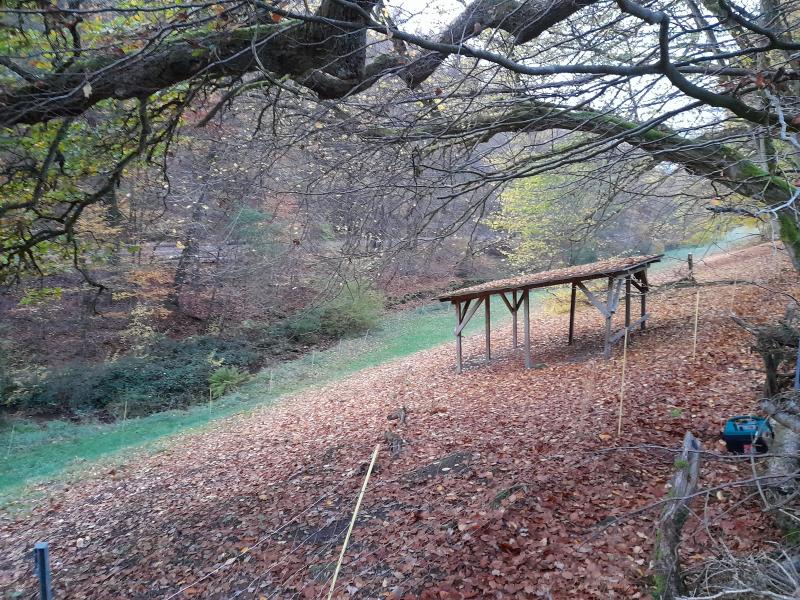 Behindert durch Baumabschnitt meinerseits und ein Mastjahr Bucheckern landeten 2/3 der Herde oberhalb der Zäunung. Und wenn ich dachte, schlimmer kann es nicht mehr kommen.... fuhr eine Kolonne Autos durch den Wald und hielt auch noch mit laufenden Motoren in einer entscheidenden Phase um mal zu schauen, was wir da so machen