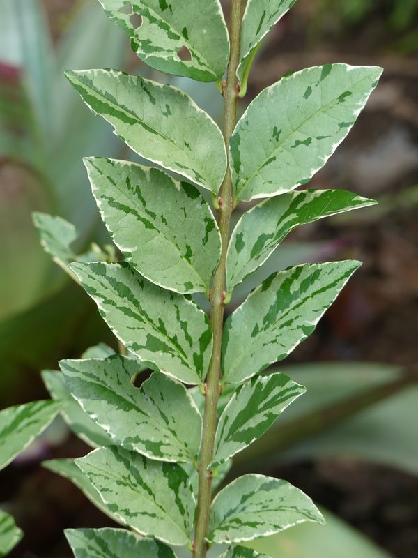 Ich glaube ich hatte noch gar nicht den schönen Ligustrum ovalifolium 'Argenteum' gezeigt, der mir im Urlaub über den Weg lief. Ich habe viele Bilder angeschaut, aber keine mit so einer starken grünen Einsprenkelung auf dem Blatt gefunden.