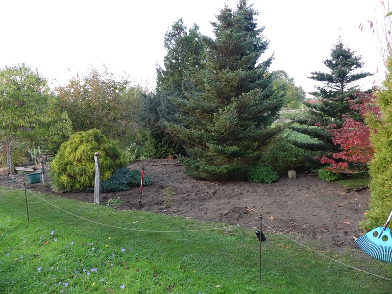 Das Beet ist fertig beräumt, der Rasenweg hindurch Geschichte (war nicht ganz so einfach zu entfernen, wie sonst, da von Tannenwurzeln durchzogen), ein paar Rosen sind gerodet, letzte Stauden getopft oder eingeschlagen und eine mickernde Magnolie ist in den Kübel verfrachtet. Am späten Nachmittag konnte ich anfangen, alles nochmal mit der Grabegabel nach Quecken zu durchsuchen. Ich hoffe, damit werde ich morgen fertig.