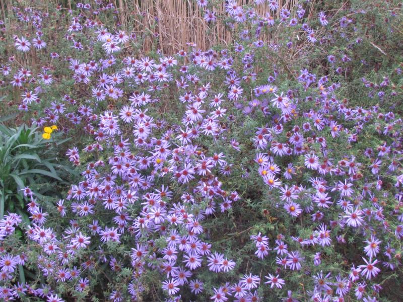 Wer Spätblüher sucht, könnte es mal evtl. mit der normalen A. oblongifolius versuchen. Nicht die verbreitete `October Skies´, diese ist zeitiger. Wie die Sorte ist auch die Art sehr trockenheitstolerant, kommt aber danach zur Blüte. Wobei das dieses Jahr wieder relativ ist, wohl nicht zuletzt durch den fast tropennachtigen Oktober wurde die gesamte Asternblüte ziemlich schnell abgehandelt und ist jetzt paktisch vorbei. Auch diese, obwohl sie sonst ebenso bis mindestens Ende November durchhält.