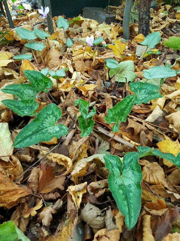 Ein paar schöne Alpenveilchen ( nur coum bzw hederifolium - bisher ... ) wachsen auch hier.