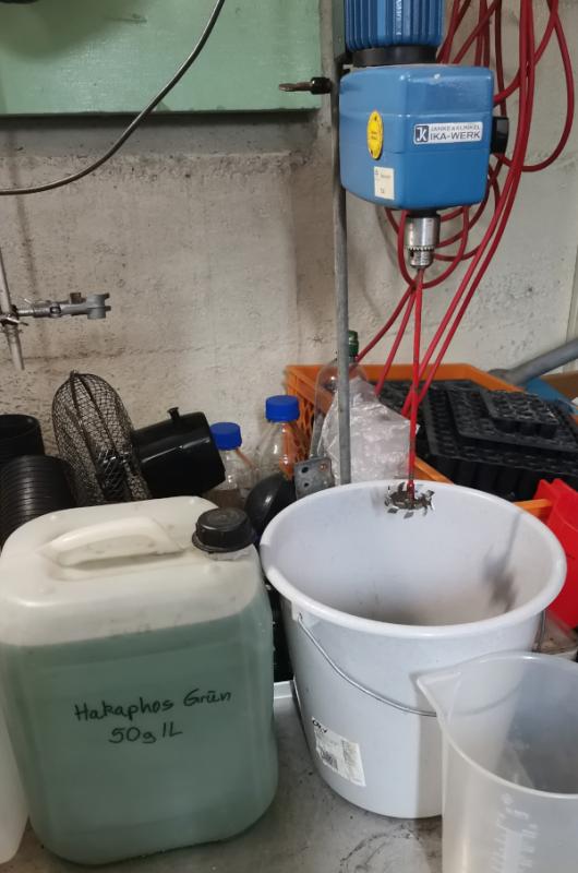 Anstrich hab ich schon fertig gekauft, oben wässrig und unten wie pures Kalk, ich rühr mal bis arm abfällt.
