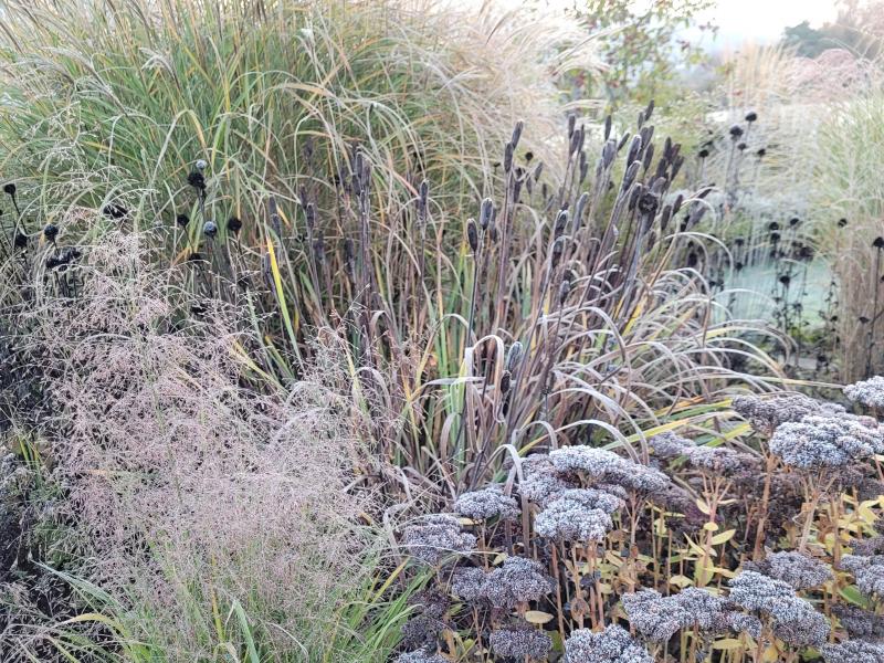 Nun sind sie da, die Zuckerhäubchen auf den Sedum... und die zarten Graspuschel sind endlich besser auf den Fotos erkennbar. ;)