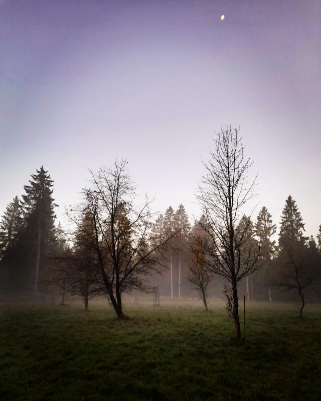 Ich musste ganz früh morgens gleich die Baumschutze einsammeln. Nicht, dass sie auf dem Schrotthaufen gelandet wären ;D das oben ist noch der Mond