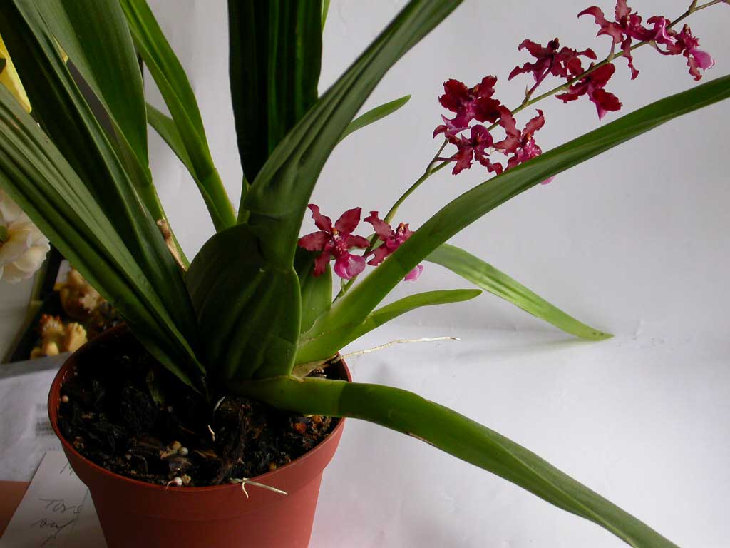 Es ist meiner Meinung nach ein Meriklon des Oncidium Sharry Baby, aber nicht "Sweet Fragrance", sondern eher etwas in Richtung "Red Fantasy". Onc. Sharry Baby ist die Hybride Onc. Jamie Sutton x Onc. Honolulu (Quelle1, Quelle2) , Onc. Jamie Sutton ist Onc. ornithorhynchum x Onc. powellii, während Onc. Honolulu die Hybride Onc. Moir x Onc. leucochilum ist. Von diesen Eltern duften zumindest die Naturarten Onc. ornithorhynchum (wirklich sehr angenehm!) und Onc. leucochilum. Du siehst, Dein Baby ist ein gelungenes Produkt jahrelanger Orchideenzucht!