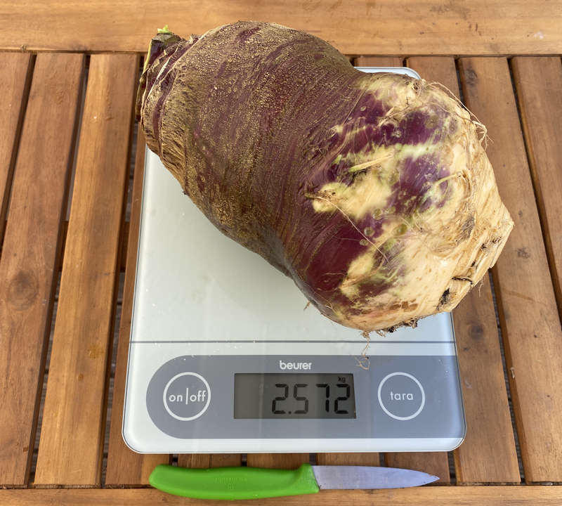 Und heute gleich eine der dicken Verwandtschaft gezogen: Kohlrüben. Von dieses Babys gibt Dank günstigen Herbstbedingungen noch viele mehr: