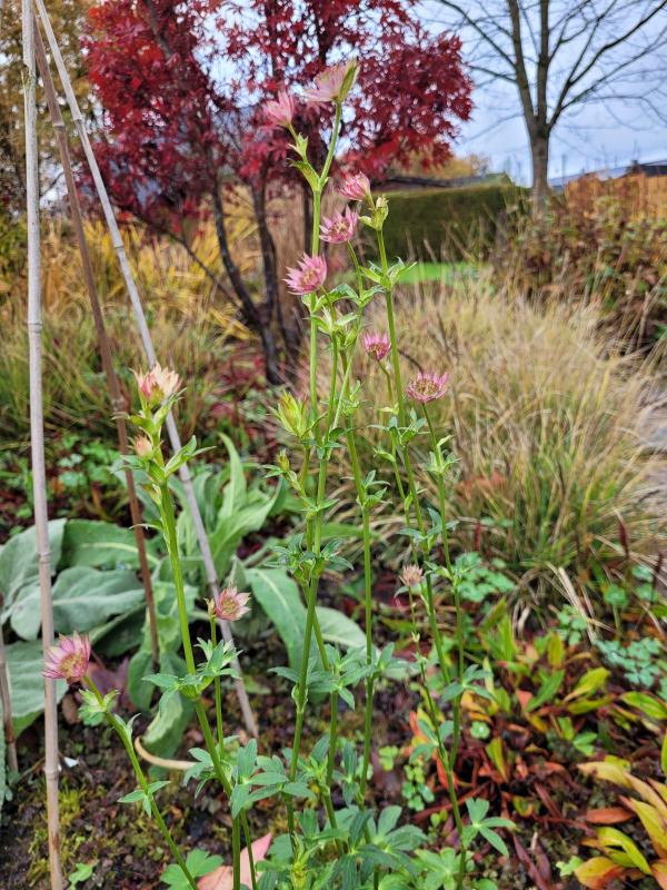 Hier hat sich auch jemand komplett vertan und erst jetzt im November die erste Blüte geschoben... so einen hüfthohen Blütenstand hatte ich bei Astrantia 'Roma' noch nie. :o