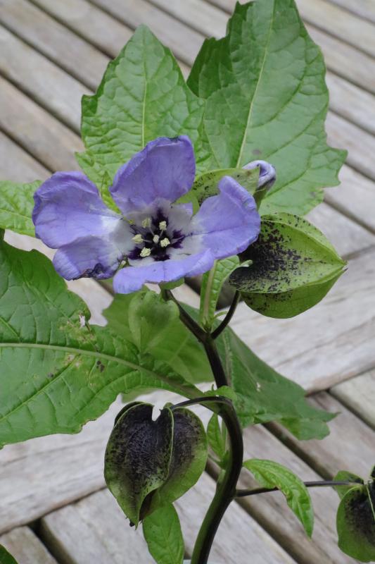 Den deutschen Namen habe ja nicht ich ihr gegeben. ;) Botanisch heißt sie Nicandra physalodes, was auf die Ähnlichkeit mit den Lampionpflanzen hinweist. Auf jeden Fall ist es eine sehr attraktive Zierpflanze. :) Bekannt war sie mir auch nur als Schädlingsbekämpfungsmittel. Sie wuchs dort im Wald zusammen mit Datura - offensichtlich hatte da jemand seinen botanischen Giftmüll entsorgt. ;)