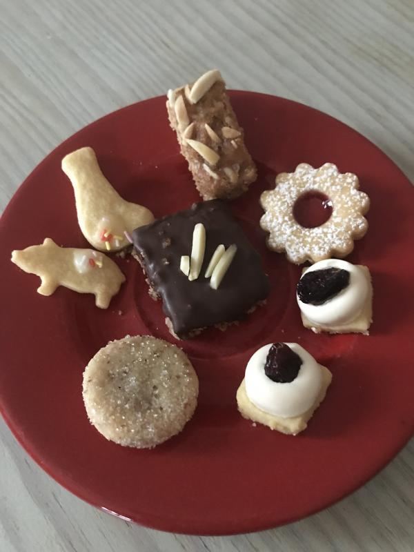Auf dem Teller liegen außerdem noch Gersemi‘s Lebkuchen vom Blech, Echte Spitzbuben und Butterplätzchen.