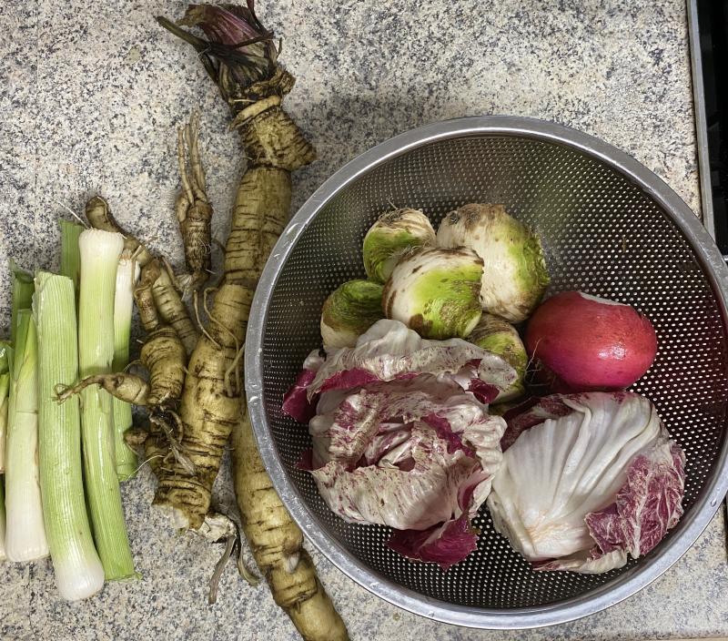 Jeden Tag Radicchio, jeden zweiten Rettich, Lauch, diverses Wurzelzeug und vor allem Teltower Rübchen. An denen kann ich mich nicht abessen, die schmecken immer und dieses Jahr ist die Qualität besonders gut. Zum Glück hatte ich viel ausgesät, so dass ich noch sehr viel zu ernten habe.