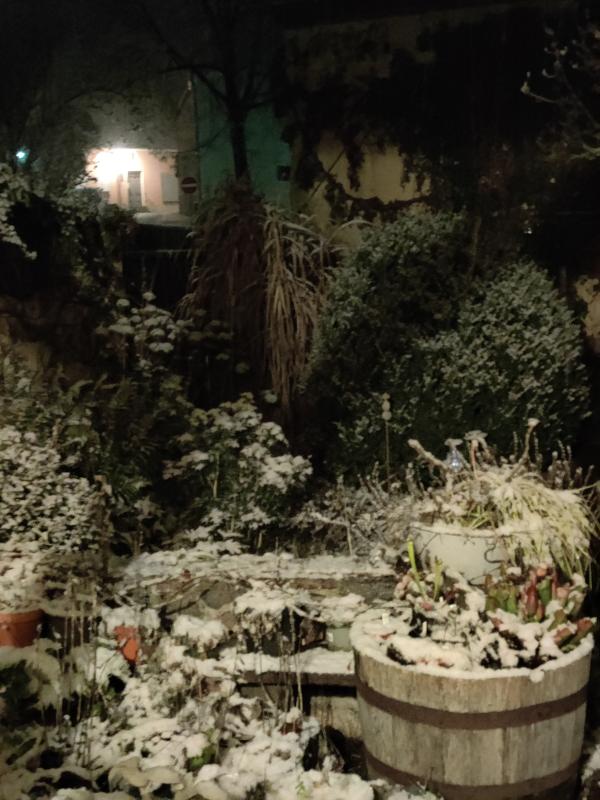 Mir wäre das "ekelige weiße Zeug" auch dreimal lieber gewesen als der ewige Dauerregen. Da ich heute wieder erst um 18:30 Uhr nach Hause gekommen bin, erübrigten sich die Gartenarbeiten ohnehin, denn um diese Zeit ist es schon stockdunkel. Vielleicht kann ich morgen noch mit klammen Fingern meine restlichen Blumenzwiebeln im Schlamm versenken, bevor der Frost kommt...