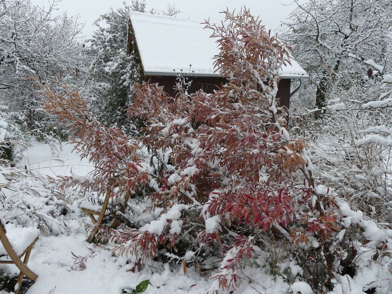 Bristle sei Dank stehen hier nun zwei Poliothyrsis sinensis, von denen eine noch ihr schönes Herbstlaub trägt.