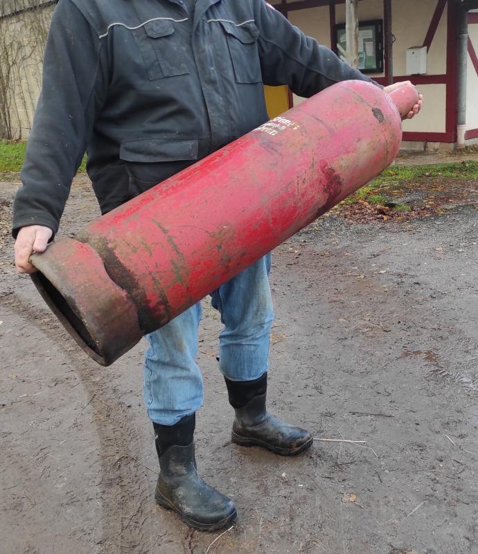 Nun liegt sie wieder im Auto. Zum Glück nicht mehr in meinem. Der Kumpel hat die Möglichkeit die Flasche über die Flughafenfeuerwehr der fachgerechten Entsorgung zuzuführen. Wo vielleicht ganze Flugzeuge entsorgt werden müssen kommt es auf das Fläschchen nicht an. 8) . Ich sah aber so ein Glitzern in den Augen und vielleicht gibt es doch eine Fortsetzung. Der Kumpel kann auch schweißen ...